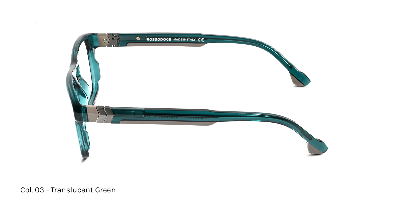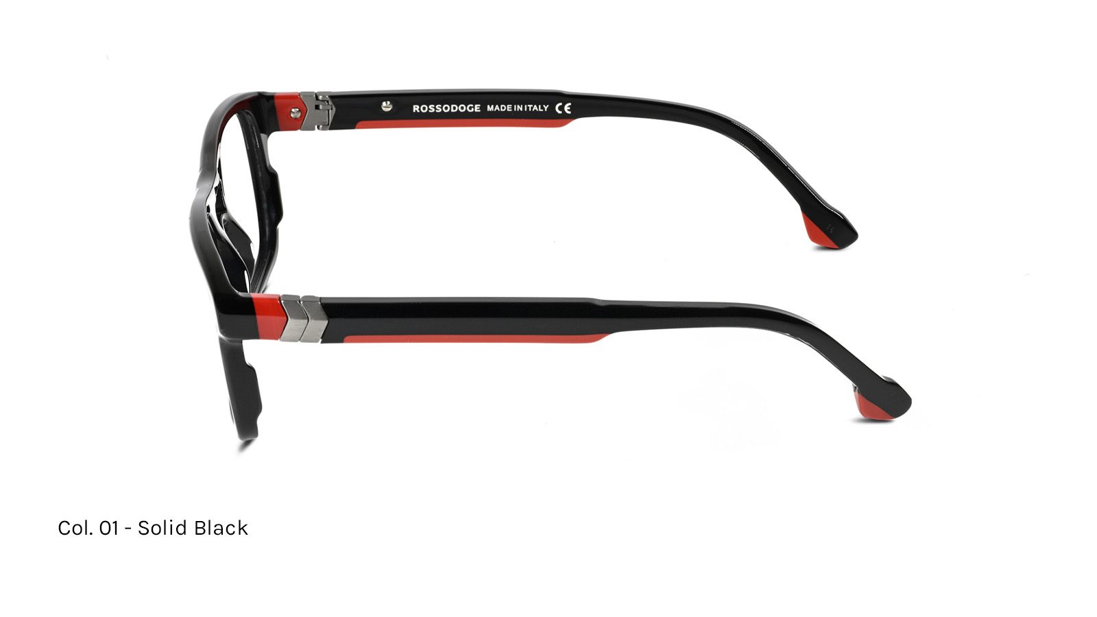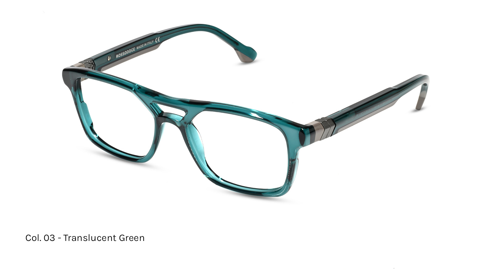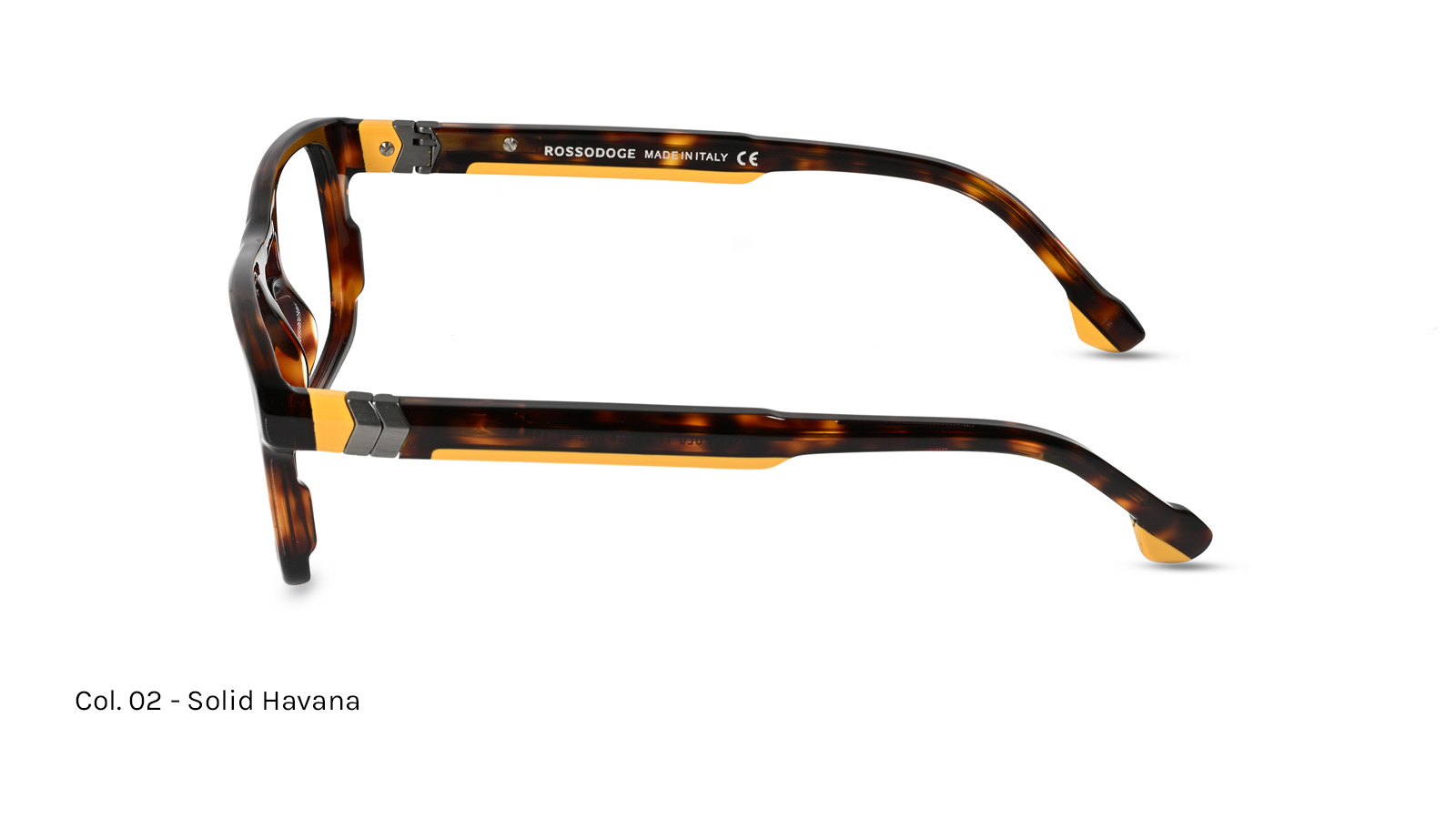 Acetate lamination in different colors on front and temples, steel core. Flex hinge designed for maximum comfort.