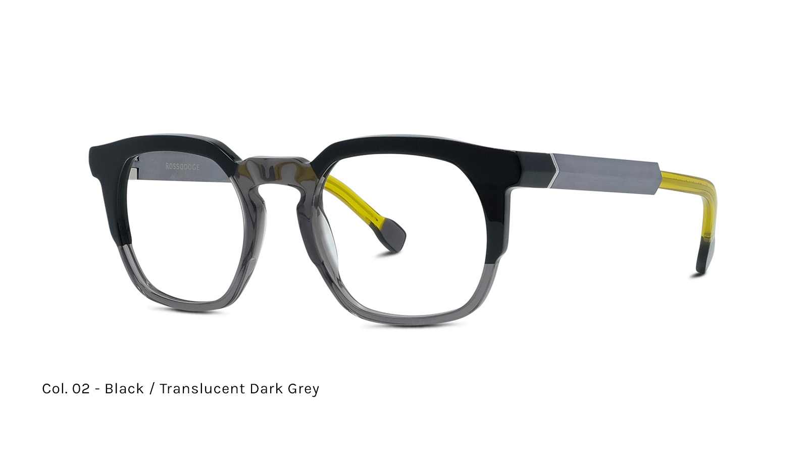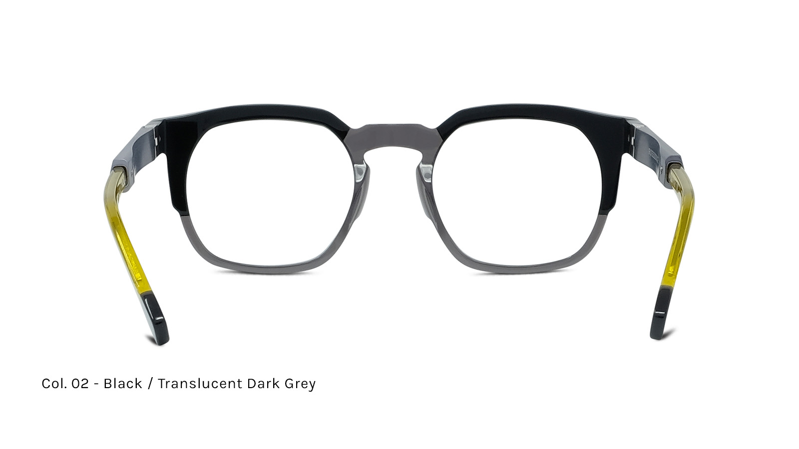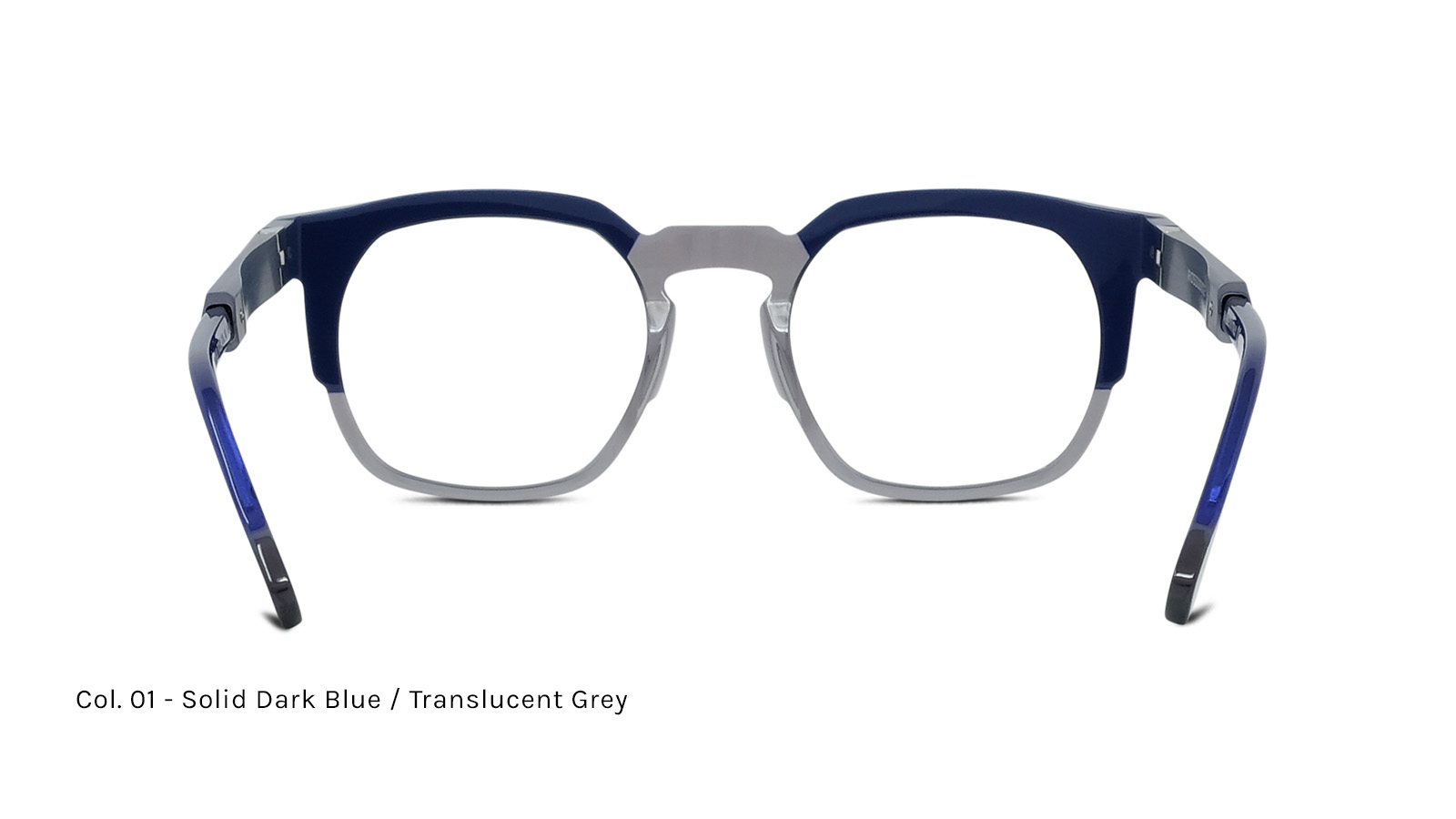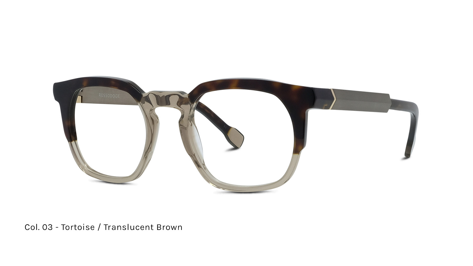 Acetate lamination in different colors on the front and temples, with a steel core, aluminum detail on the temple, and a brass nose piece. Temples featuring an Ergal 7075 aluminum element with a satin anodized finish, making it lighter and more durable.