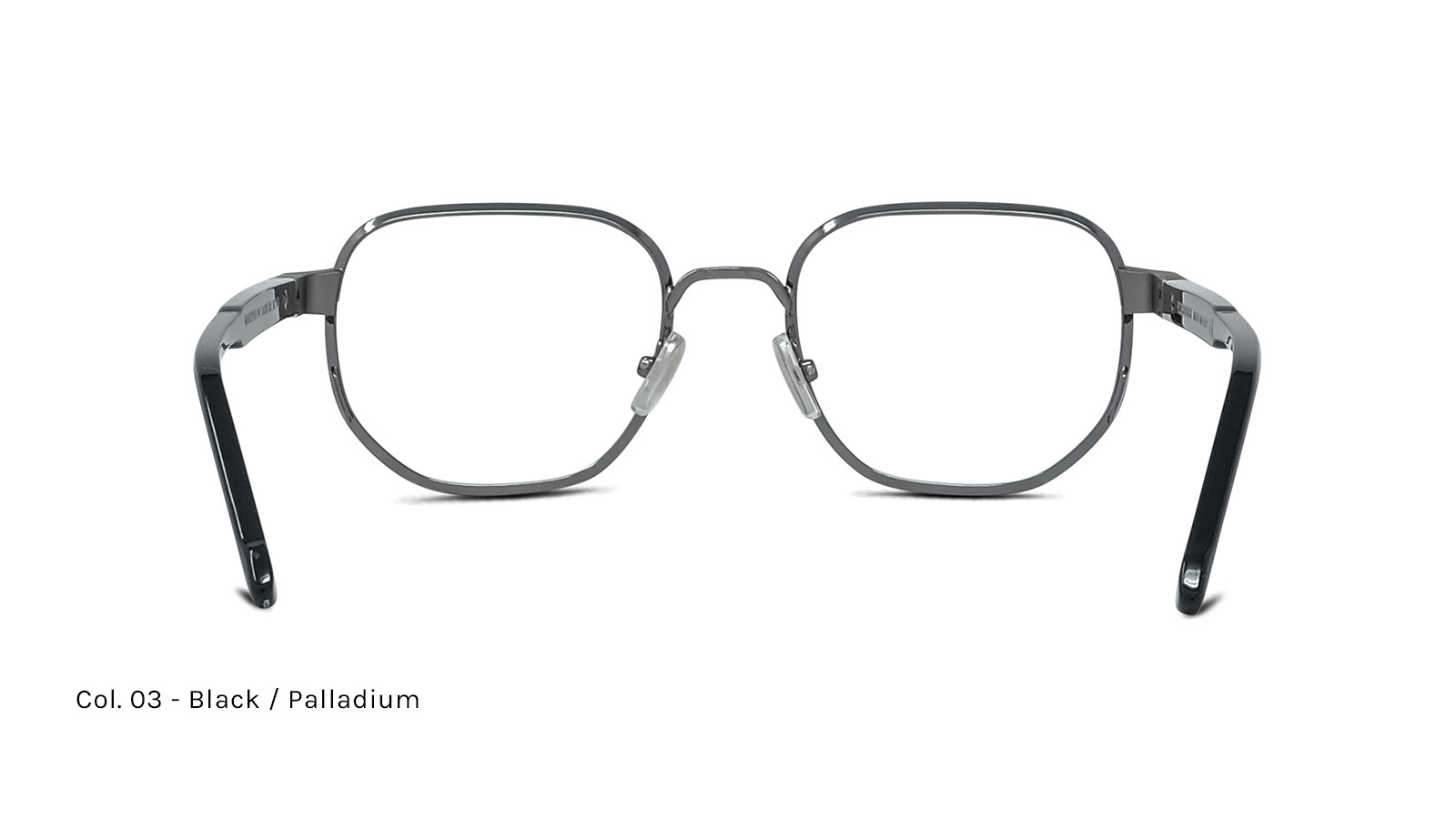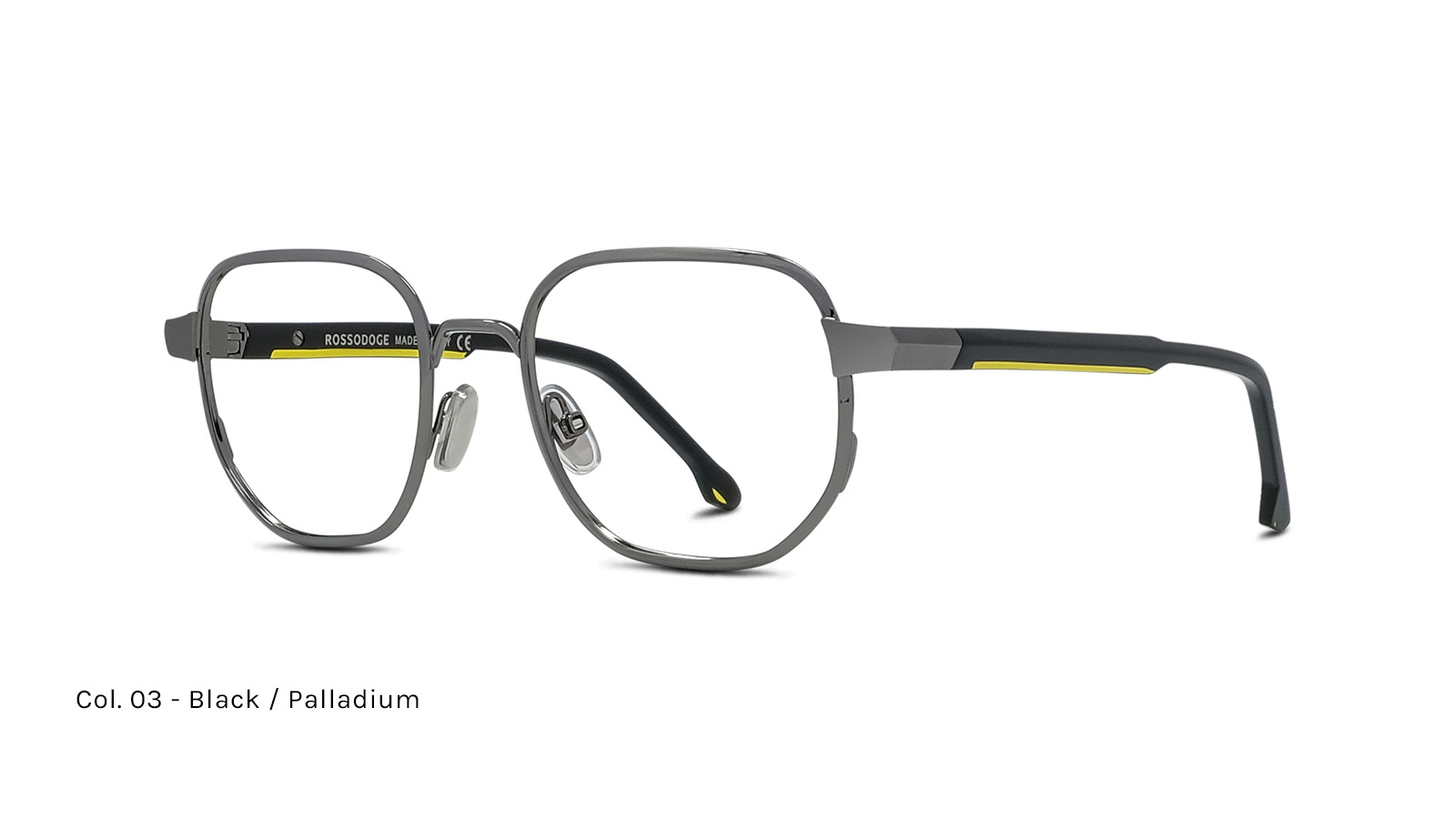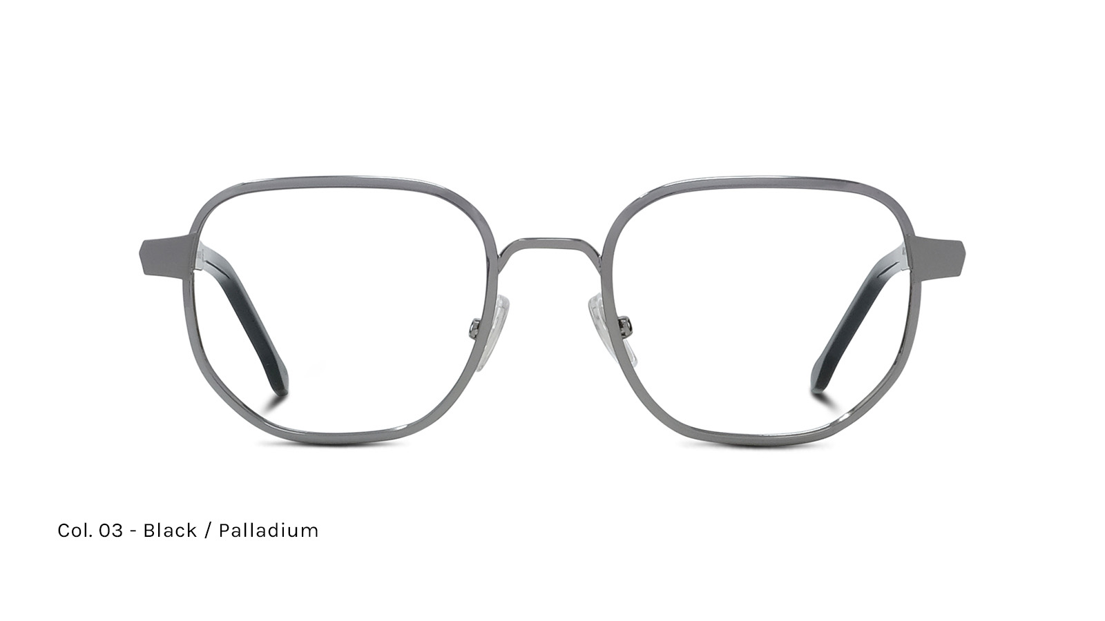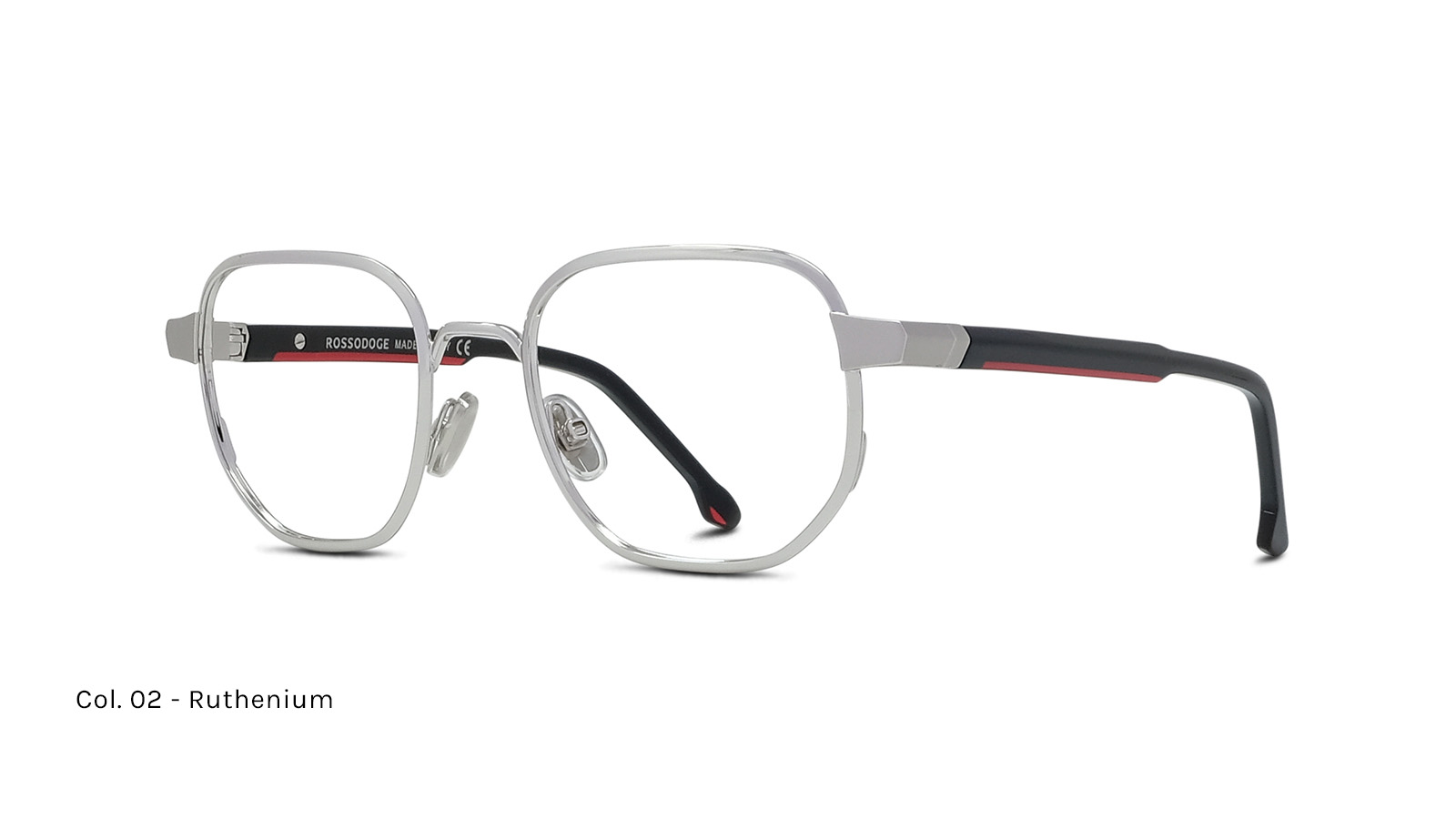 Frontale in metallo, aste con acetato laminato bicolore, anima in acciaio. Cerniera flex progettata per garantire il massimo comfort.