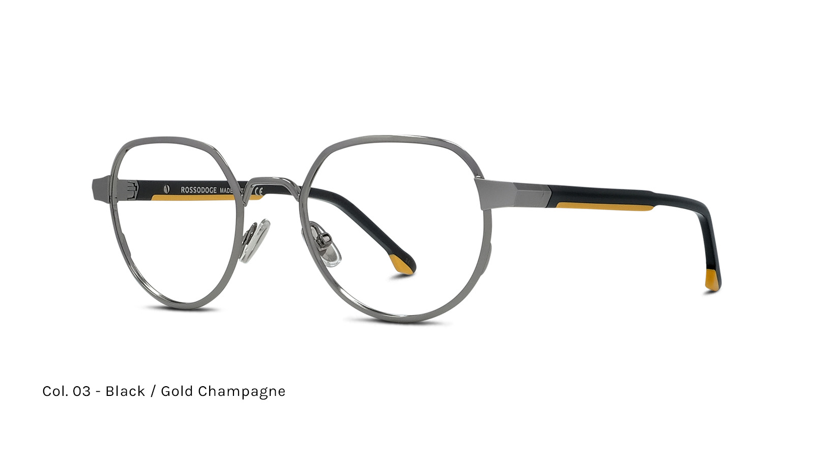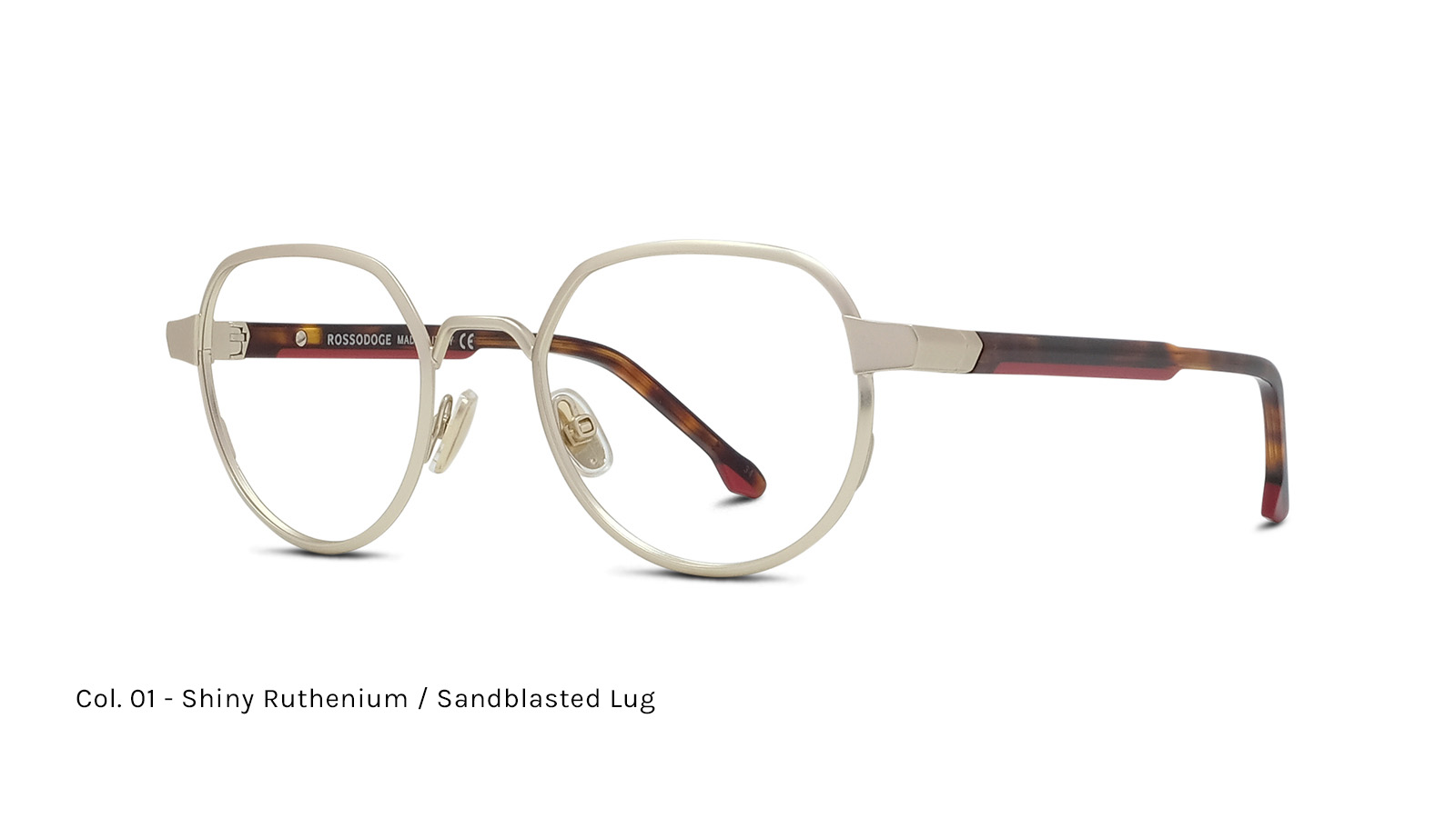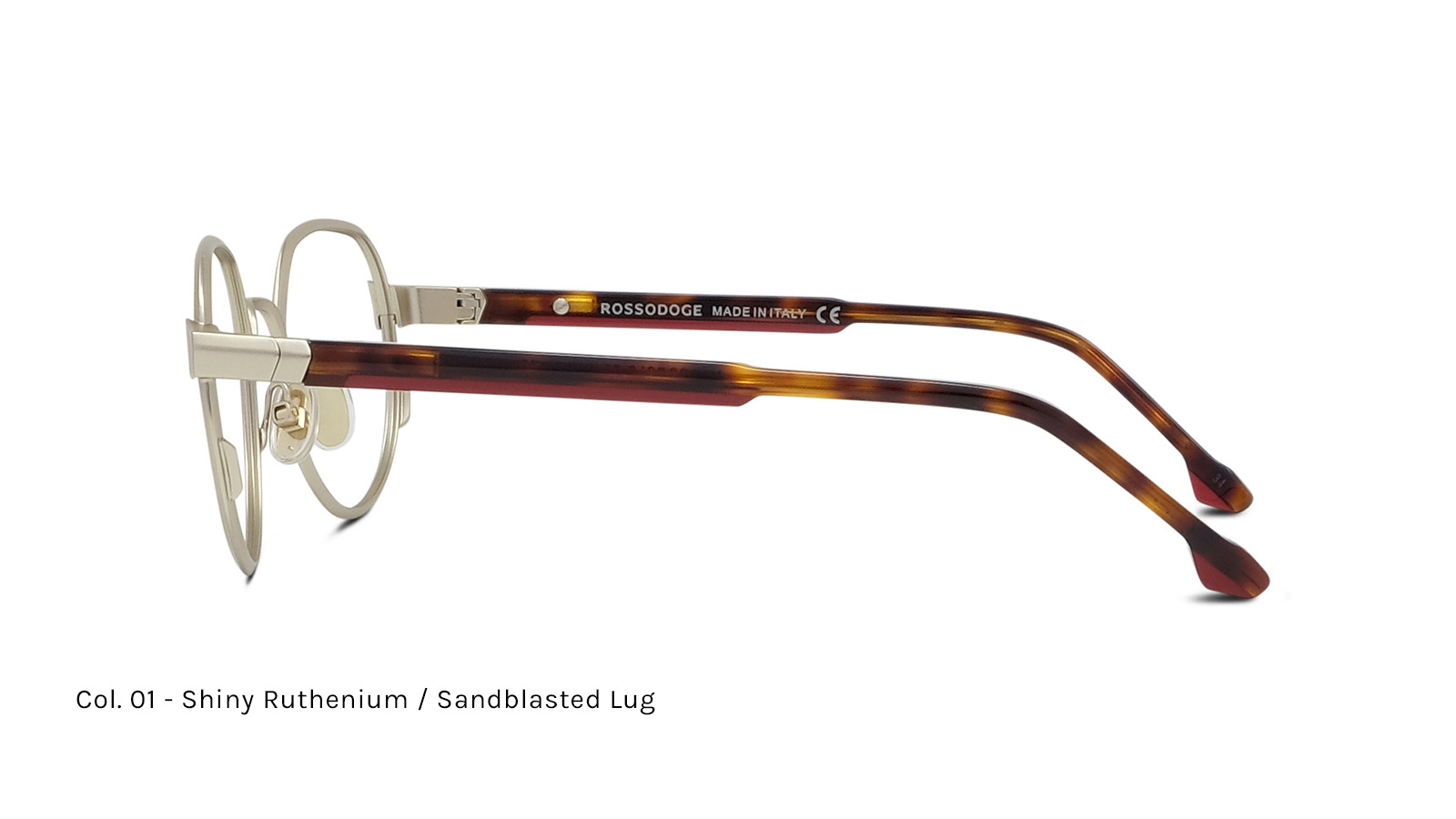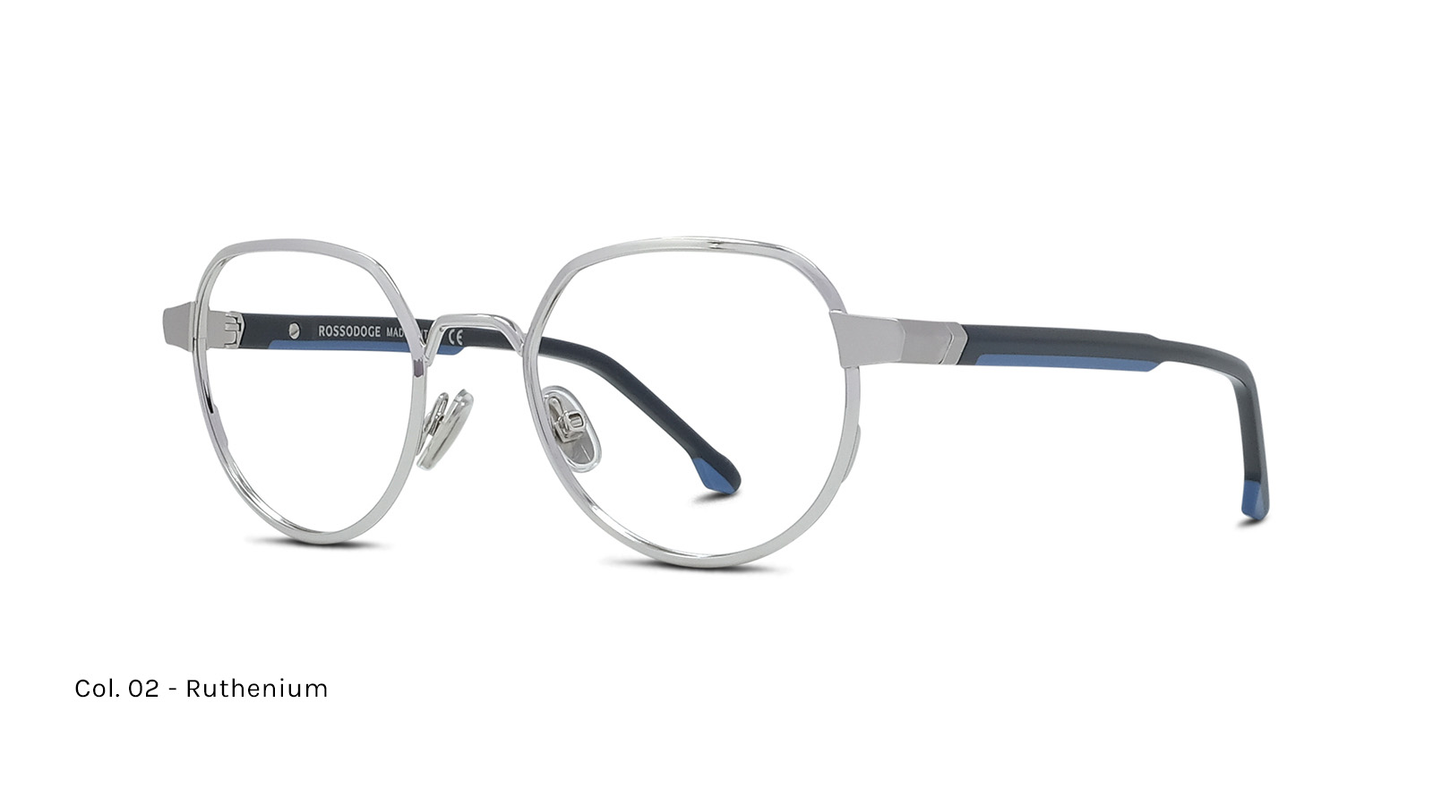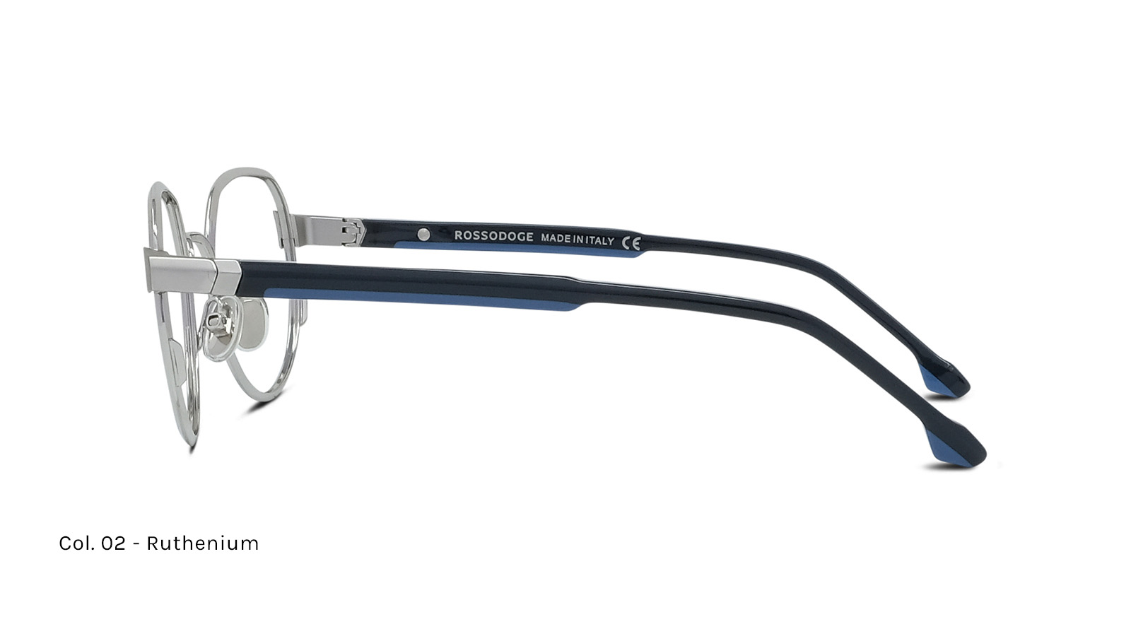 Frontale in metallo, aste con acetato laminato bicolore, anima in acciaio. Cerniera flex progettata per garantire il massimo comfort.