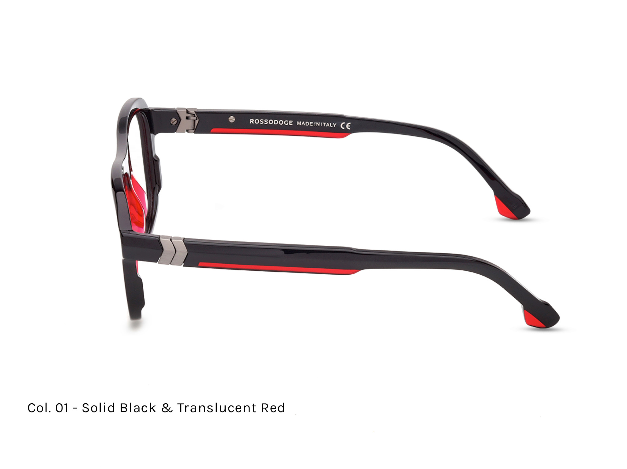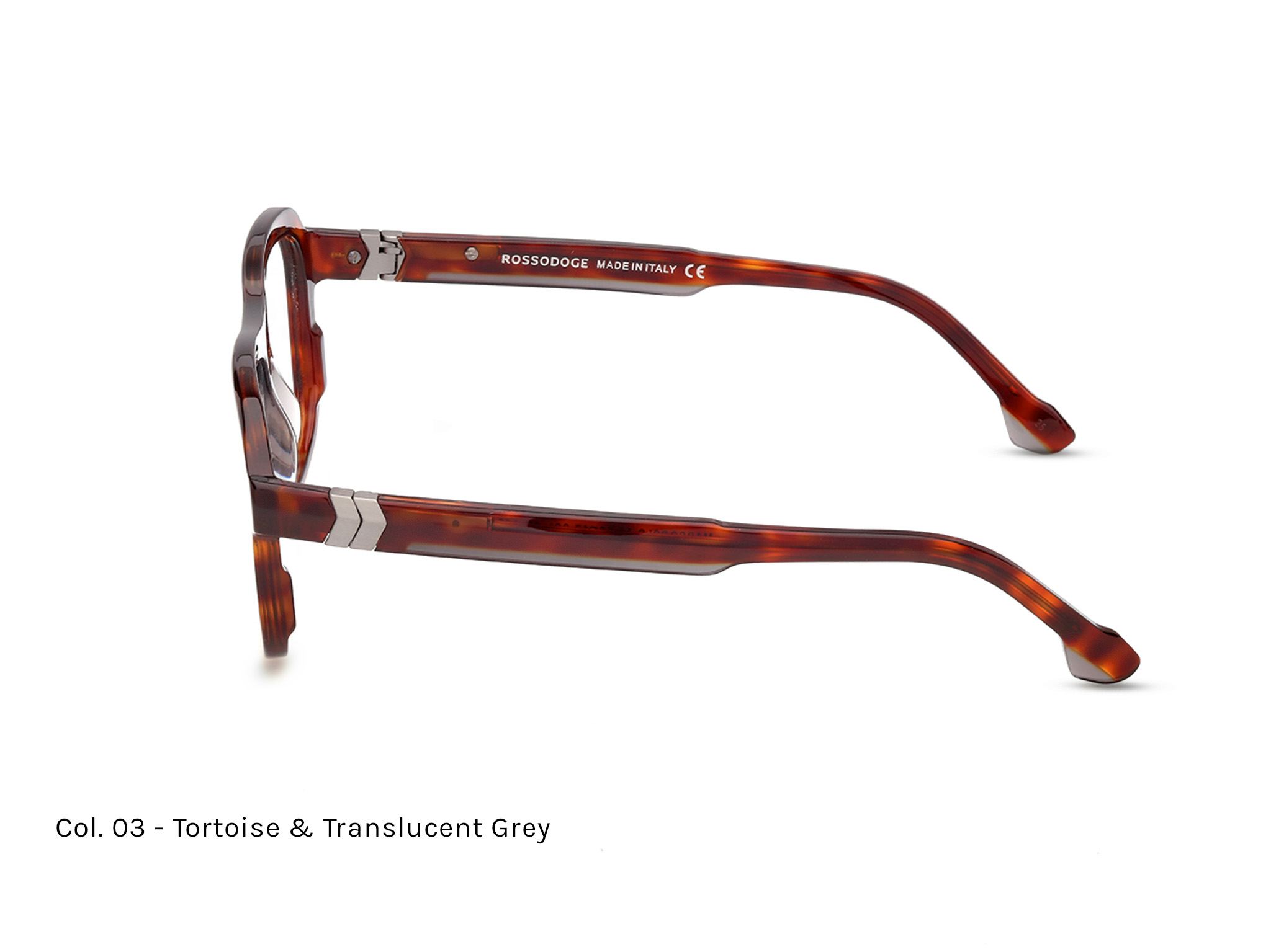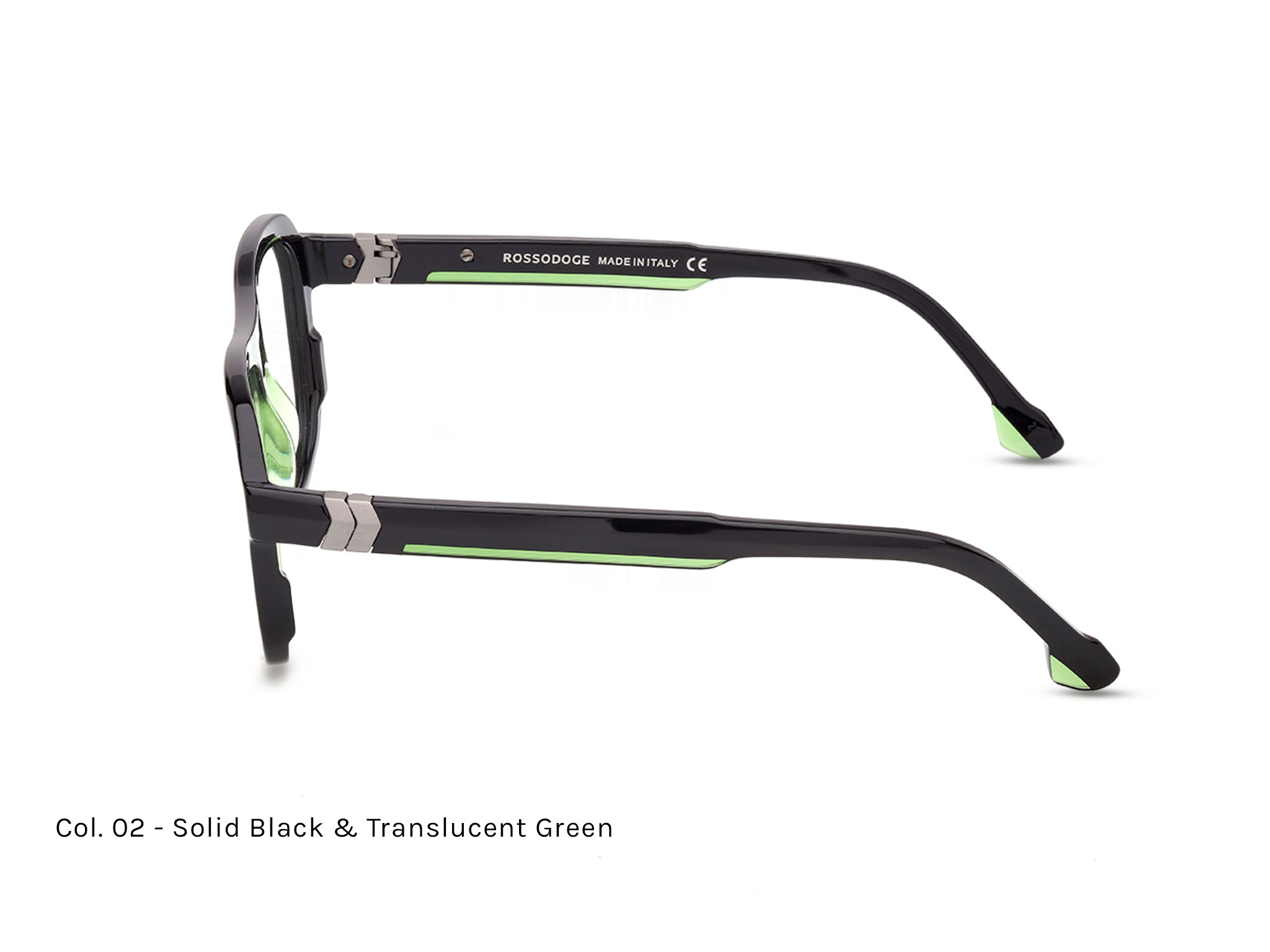 Laminazione di acetati in diverse colorazioni su frontale e aste, anima in acciaio. Cerniera flex progettata per garantire il massimo comfort.